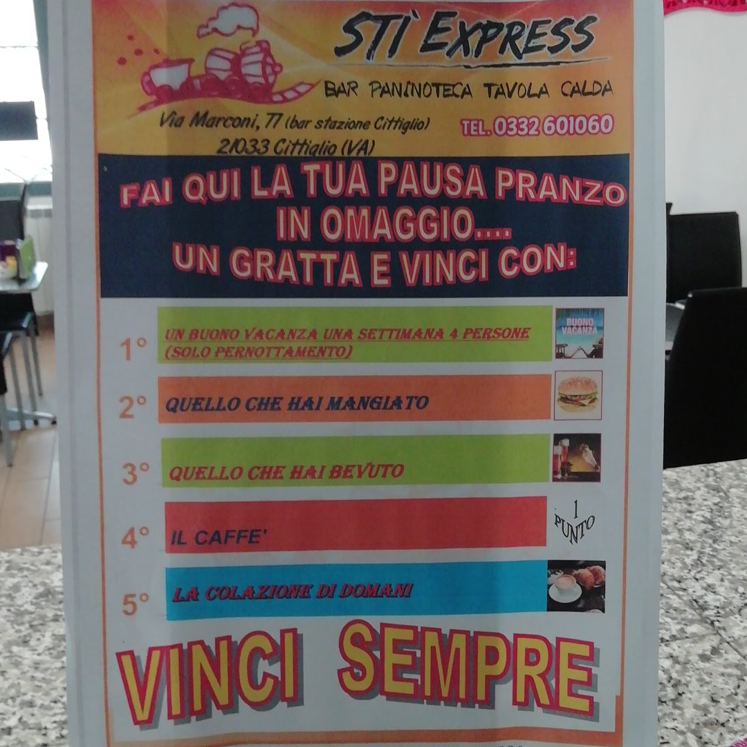 Welcome to Bar Sti' Express, a charming café tucked away in the heart of Cittiglio, Italy. Located on Via G. Marconi, this intimate venue offers a delightful menu that caters to breakfast enthusiasts. With its cozy atmosphere and welcoming staff, it’s no wonder patrons like Patrizia Giussani rave about the quality of their morning offerings.
